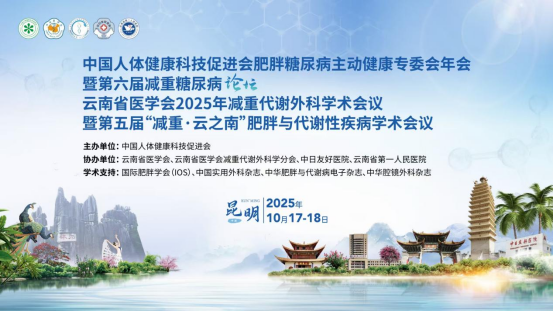 • 2025年10月17日至18日,中国人体健康科技促进会肥胖糖尿病主动健康专委会年会暨第六届减重糖尿病论坛、云南省医学会2025年减重代谢外科学术会议暨第五届“减重·云之南”肥胖与代谢性疾病学术会议在云南昆明召开。本次大会由云南省医学会主办,云南省医学会减重代谢外科学分会、云南省第一人民医院、中日友好医院联合承办,汇聚了国内外肥胖代谢领域的顶级专家与学者,共商肥胖与代谢性疾病防治大计。
